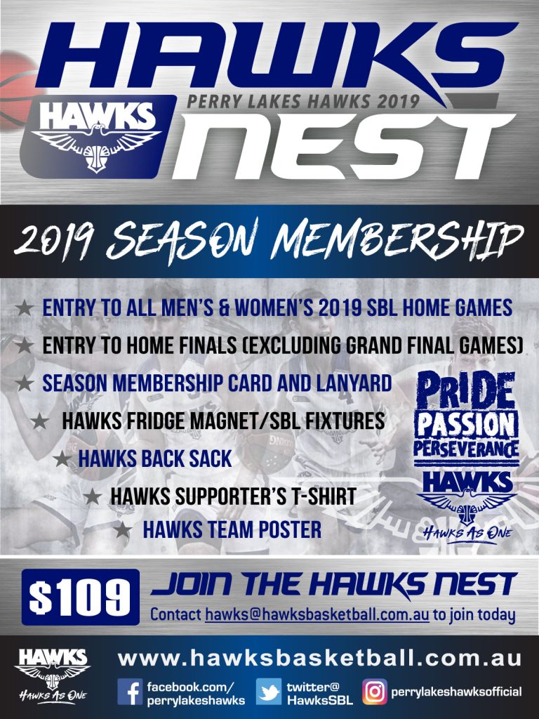 Get behind your Hawks and buy a season membership. See the 2017 WSBL and 2018 MSBL Champions battle it out at each home game during the 2019 season.