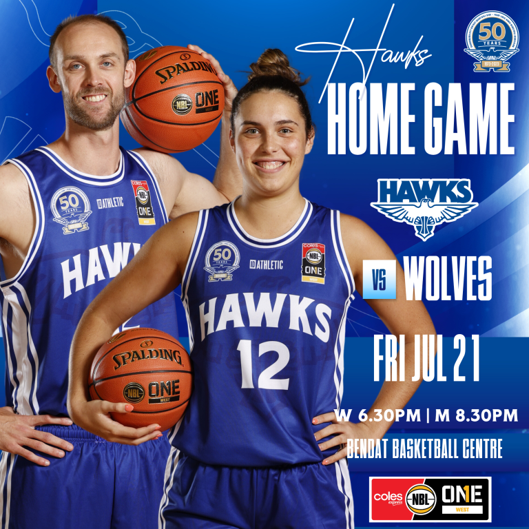 Hawks at Home vs Wolves for last Regular Season Game Friday Night The Hawks are back home Friday Night for their last regular season game Friday July 21st Bendat Basketball Stadium Joondalup Wolves Women Tip-Off 6.30pm Men Tip-Off 8.30pm Vogue Performers One Big Voice Choir Doors open 5.30pm Tickets available at the door WABL players in their Hawks gear get in FREE Domestic players in their club gear get in FREE Wear blue View all sponsors Become a sponsor Related Posts 27/08/2024 WABL Finals Week 1 Wrap Read more 02/08/2024 NBL1 West Women through to Preliminary Final Saturday Night against Cockburn Read more 31/07/2024 Parking at Bendat on Thursday and Friday Read more 27/07/2024 Hawks Women into the Semi-Final Thursday Night at Bendat Read more