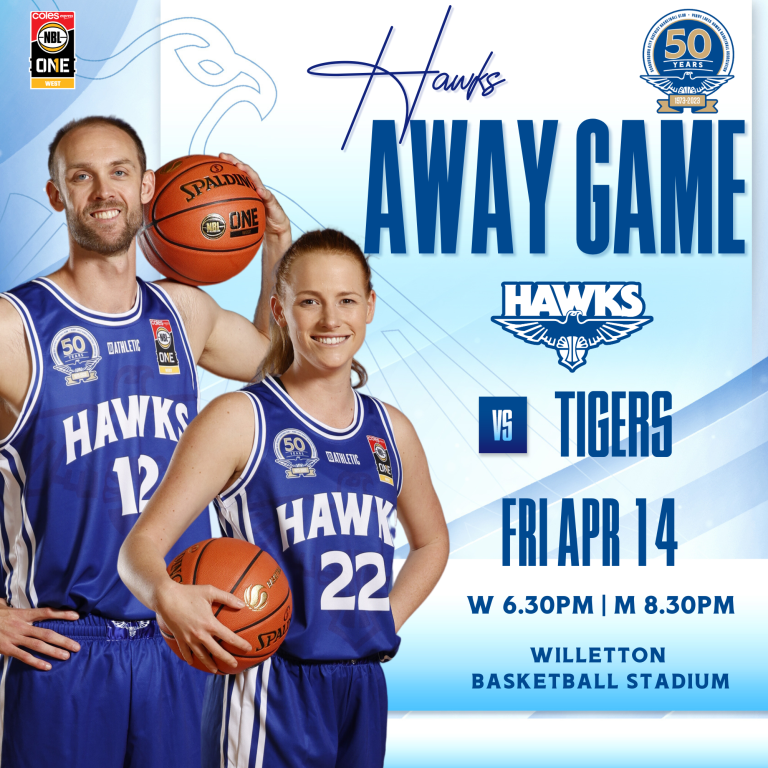 Hawks Head into Double Header Weekend 14th-15th April Game 1 Friday 14th April Willetton Basketball Stadium Willetton Tigers Women Tip-Off 6:30pm Men Tip-Off 8:30pm Doors open 5:30pm Tickets available at the door Game 2 Saturday 15th April Belmont Oasis Recreation Centre Perth Redbacks Women Tip-Off 5:00pm Men Tip-Off 7:00pm Tickets available at the door Live stream available at https://nbl1.com.au/watch/west View all sponsors Become a sponsor Related Posts 27/08/2024 WABL Finals Week 1 Wrap Read more 02/08/2024 NBL1 West Women through to Preliminary Final Saturday Night against Cockburn Read more 31/07/2024 Parking at Bendat on Thursday and Friday Read more 27/07/2024 Hawks Women into the Semi-Final Thursday Night at Bendat Read more