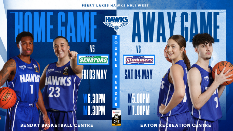Hawks head into their 3rd Double Header Weekend It has been a busy time for our NBL1 West teams with their third double header in a row coming up this weekend with a home game and a trip to Bunbury Game 1 – Home Friday May 3rd Bendat Baseball Centre Warwick Senators Women Tip-Off 6:30pm Men Tip-Off 8:30pm Tickets available at the door WABL and domestic players FREE entry Watch it live and free on the NBL1 app Game 2 – Away Saturday May 4th Eaton Recreation Centre Southwest Slammers Women Tip-Off 5:00pm Men Tip-Off 7:00pm Tickets available at the door. Watch it live and free on the NBL1 app https://nbl1.com.au/news/watch-nbl1-live-and-free/ View all sponsors Become a sponsor Related Posts 27/08/2024 WABL Finals Week 1 Wrap Read more 02/08/2024 NBL1 West Women through to Preliminary Final Saturday Night against Cockburn Read more 31/07/2024 Parking at Bendat on Thursday and Friday Read more 27/07/2024 Hawks Women into the Semi-Final Thursday Night at Bendat Read more