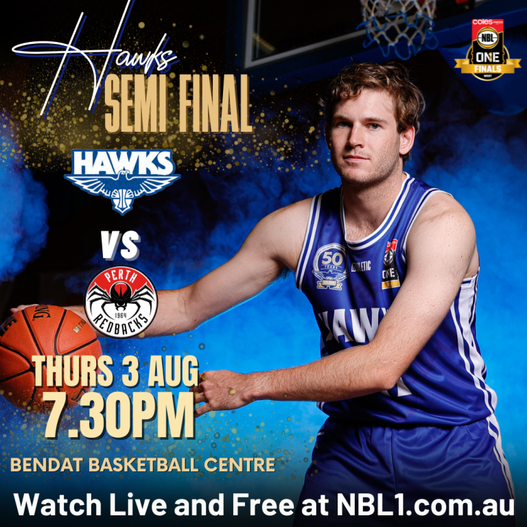 | After a 9 point loss to the Flames on Friday night in the Qualifying Final, the Hawks Men take on the Perth Redbacks Thursday in the semifinal round of NBL1 West. The winner will move on to the Preliminary final on Saturday against the Geraldton Buccaneers and for the loser their season is over.