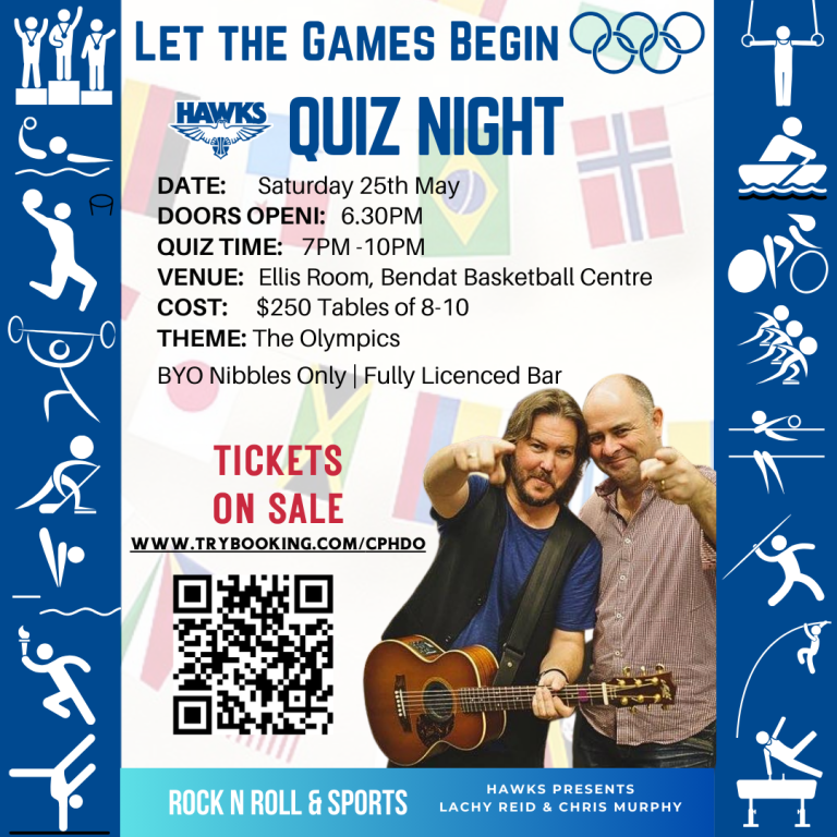 The Hawks will be holding a Quiz Night on Saturday May 25th.