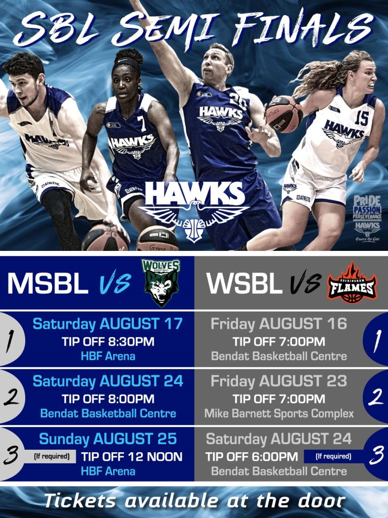 Hawks Semi-Finals Fixtures Released View all sponsors Become a sponsor Related Posts 27/08/2024 WABL Finals Week 1 Wrap Read more 02/08/2024 NBL1 West Women through to Preliminary Final Saturday Night against Cockburn Read more 31/07/2024 Parking at Bendat on Thursday and Friday Read more 27/07/2024 Hawks Women into the Semi-Final Thursday Night at Bendat Read more