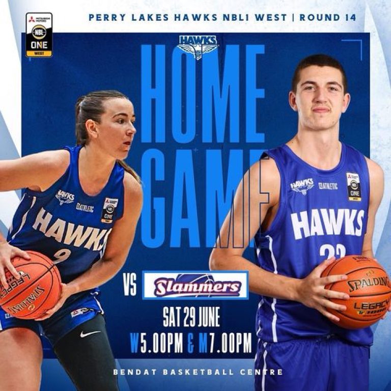 Hawks take on Slammers Saturday Night at Bendat We have a home game this week – get down to Bendat and cheer for your Hawks Saturday June 29th Bendat Baseball Centre Southwest Slammers Women Tip Off 5.00pm Men Tip Off 7.00pm Tickets available at the door WABL and domestic players FREE entry Watch it live and free on the NBL1 app View all sponsors Become a sponsor Related Posts 27/08/2024 WABL Finals Week 1 Wrap Read more 02/08/2024 NBL1 West Women through to Preliminary Final Saturday Night against Cockburn Read more 31/07/2024 Parking at Bendat on Thursday and Friday Read more 27/07/2024 Hawks Women into the Semi-Final Thursday Night at Bendat Read more