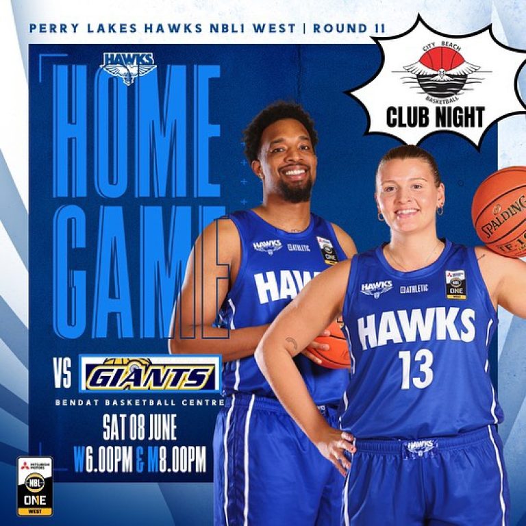 Hawks take on the Giants Saturday Night at Bendat Get to Bendat Saturday night !! Don’t miss out on the action Players will be signing cards and posters post game. Saturday June 8th Bendat Basketball Centre Goldfields Giants Women Tip-Off 6:00om Men Tip-Off 8:00pm Tickets available at the door City Beach Game Night Maurice Meade Giveaway’s Prizes to be won WABL and domestic players FREE entry Watch it live and free on the NBL1 app View all sponsors Become a sponsor Related Posts 27/08/2024 WABL Finals Week 1 Wrap Read more 02/08/2024 NBL1 West Women through to Preliminary Final Saturday Night against Cockburn Read more 31/07/2024 Parking at Bendat on Thursday and Friday Read more 27/07/2024 Hawks Women into the Semi-Final Thursday Night at Bendat Read more