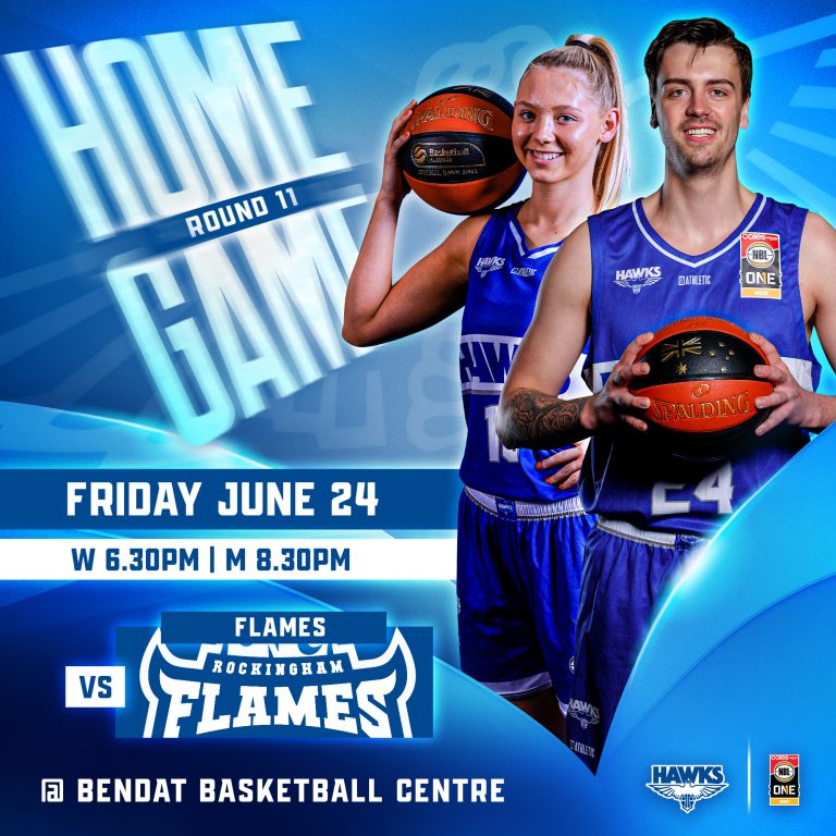 Hawks vs Rockingham Friday Night at Bendat The Hawks will take on the Rockingham Flames on Friday night at Bendat. Women 6.30pm Men 8.30pm Bendat Basketball Stadium Bar & Cafe Open Tickets st the door WABL & Domestic players free entry in club colours View all sponsors Become a sponsor Related Posts 27/08/2024 WABL Finals Week 1 Wrap Read more 02/08/2024 NBL1 West Women through to Preliminary Final Saturday Night against Cockburn Read more 31/07/2024 Parking at Bendat on Thursday and Friday Read more 27/07/2024 Hawks Women into the Semi-Final Thursday Night at Bendat Read more