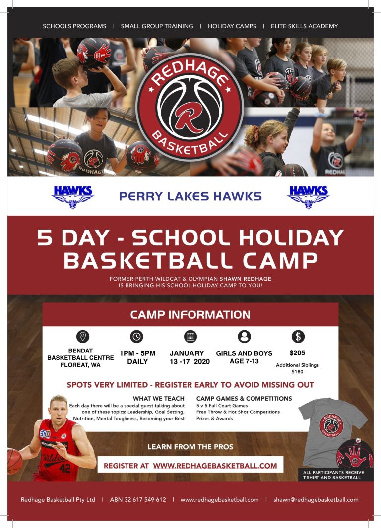 Hawks have teamed up with Redhage Basketball to conduct our Camps during the School holidays in 2020.